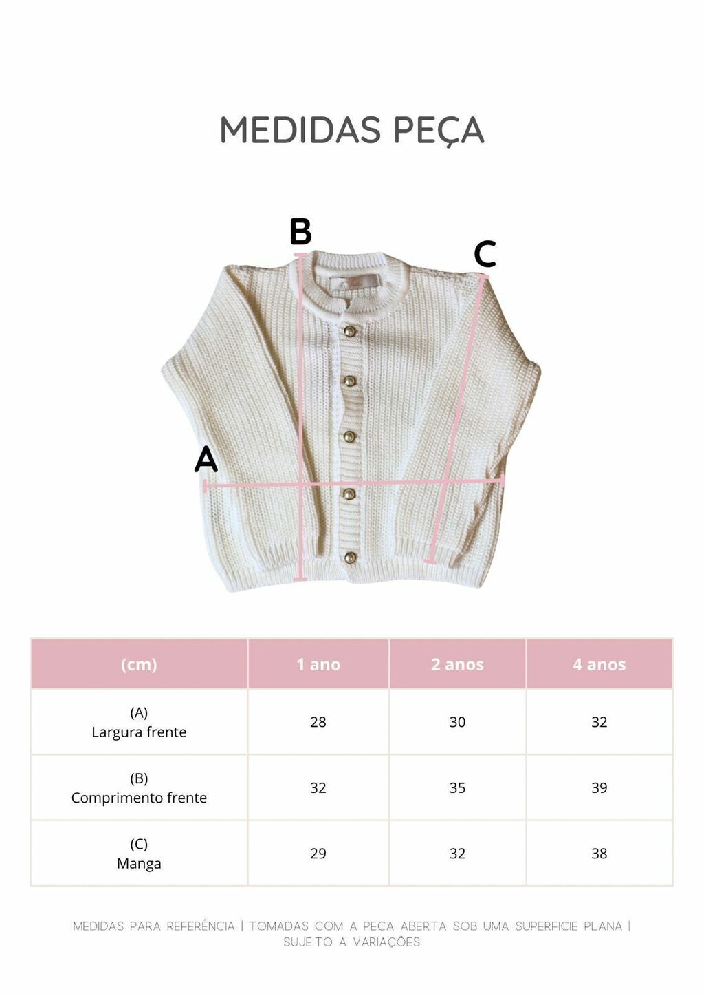 Confortável como colo de mãe, esse cardigan abraça a sua pequena com carinho. Ideal para dias fresquinhos, passeios em família ou uma festinha no fim da tarde.