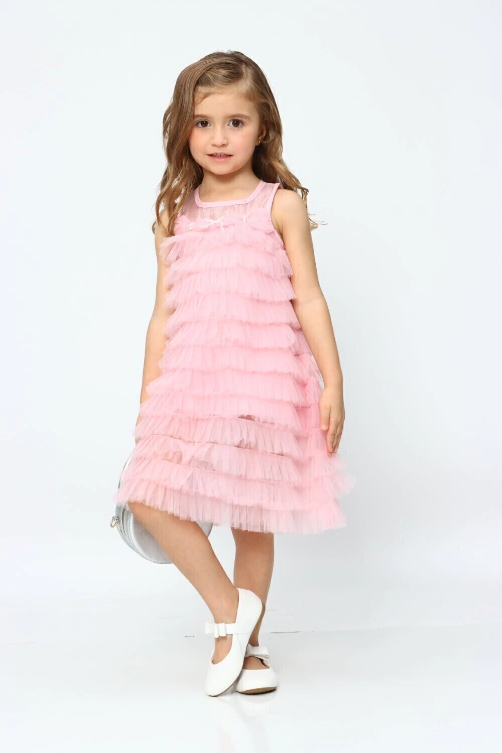 Vestido de festa em organza e tule, com detalhes de em pérolas, completamente forrado.